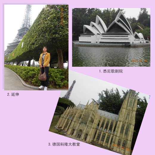 美名其曰世界之窗,那縱然是世界各地自然風光與人文景觀的一個集合體。世界之窗門外廣場上的標志,就是由玻璃構(gòu)建成的金字塔,上面鑲著由江澤民同志提詞的“世界之窗”四個大字;緊接著映入眼簾的便是聞名于世的法國巴黎埃菲爾鐵塔,雖不能與真正的埃菲爾鐵塔相媲美,但世界之窗的鐵塔也是以1比3的比例模仿真正的鐵塔鑄造,站在塔下,讓人有如觀龐物之感,便迫不及待的想要登到塔頂,一觀山河之秀美。隨著登頂?shù)碾娞菀徊讲铰噬?,感覺猶如接近天際,只感到腳下的萬物越來越小,便可嘆人的創(chuàng)造力是如此的偉大。通過塔頂?shù)耐h鏡可與香港隔海相望,香港正如白茫茫的大海之上浮動的一枚璀璨的明珠,明亮且耀眼,與大陸貌似相隔甚遠,但我們的根是在一起的。再回過頭來俯視深圳,“會當凌絕頂,一覽眾山小”甚是妙哉,將深圳的繁華盡收眼底,深吸一口天地之氣,悵然若揭,一切浮華虛妄都煙消云散,剩下的只有人與人之間的真誠、赤膽及和諧,仰觀宇宙之大,沒有什么能夠大過眉宇間的一雙亮睛,俯察品類之盛,沒有什么能夠盛過現(xiàn)掠盡繁華之后這上不接天,下不接地的一聲長嘆。